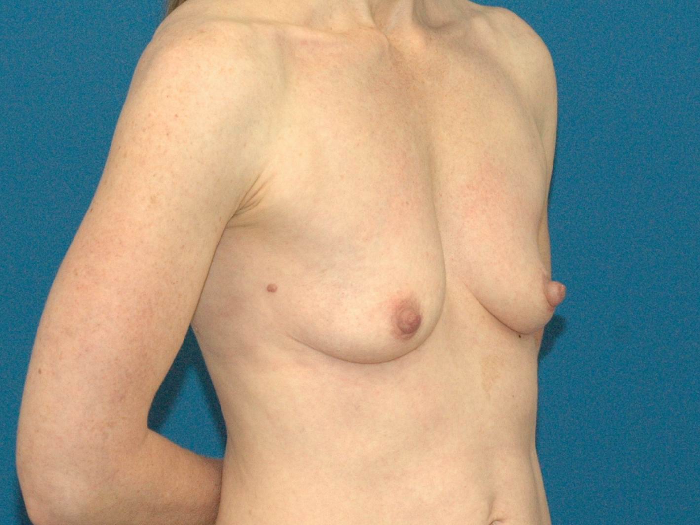 This young woman was treated with a breast lift procedure that included a silicone implant.
