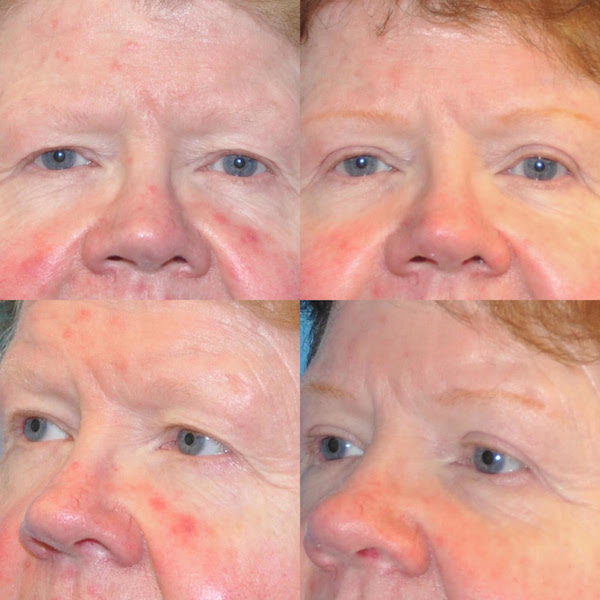 Puffy, saggy, and/or droopy eyelids can give cause to not only aesthetic unease for some of our patients, but functional concerns as well. An eyelid lift, medically termed blepharoplasty, is a surgical procedure that rejuvenates the appearance of the eyelids. Based on the surgeon’s examination, there are several approaches to achieve your cosmetic goals. Some patients require both an upper and lower blepharoplasty, whereas some patients only need one or the other to satisfy their needs. The happy patient in these photos underwent an upper blepharoplasty under local anesthesia, meaning she was awake during her procedure! Her lids are noticeably more open, giving her a more youthful appearance.